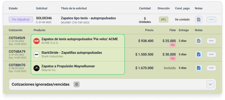Solicitudes realizadasAhora puedes comprar a cualquier proveedor con un simple clic