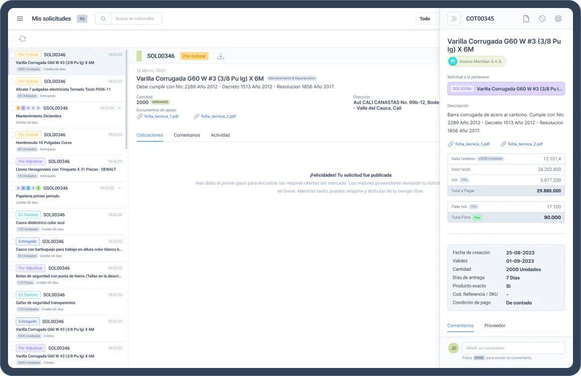 Solicitudes realizadasAhora puedes comprar a cualquier proveedor con un simple clic